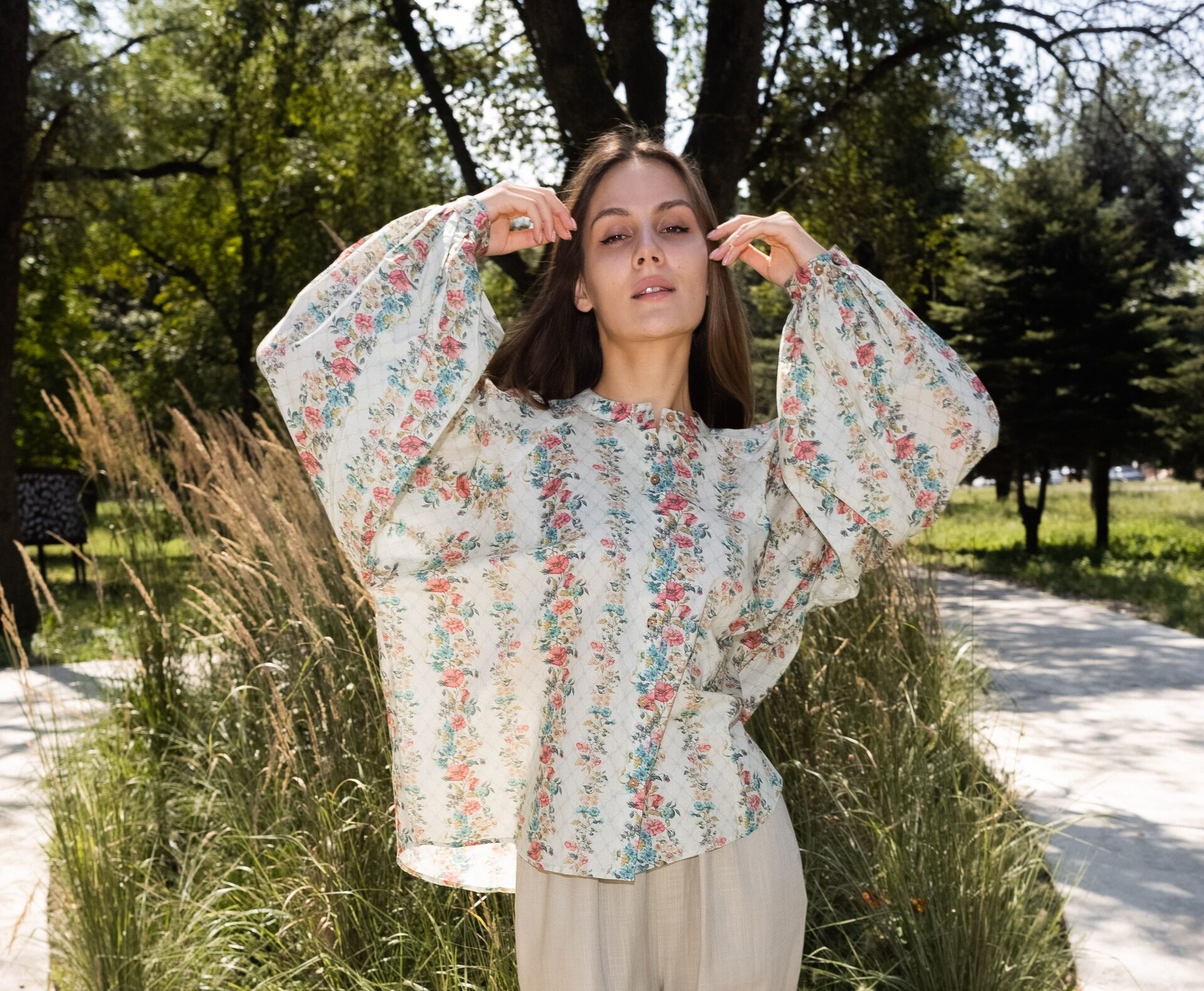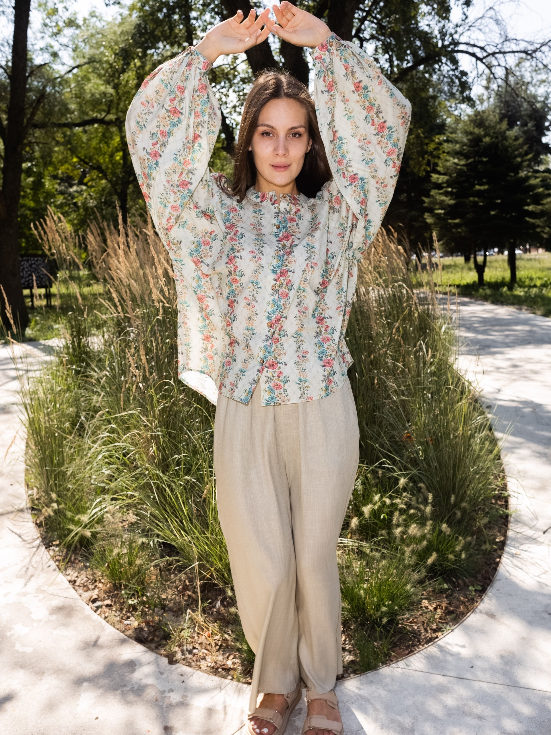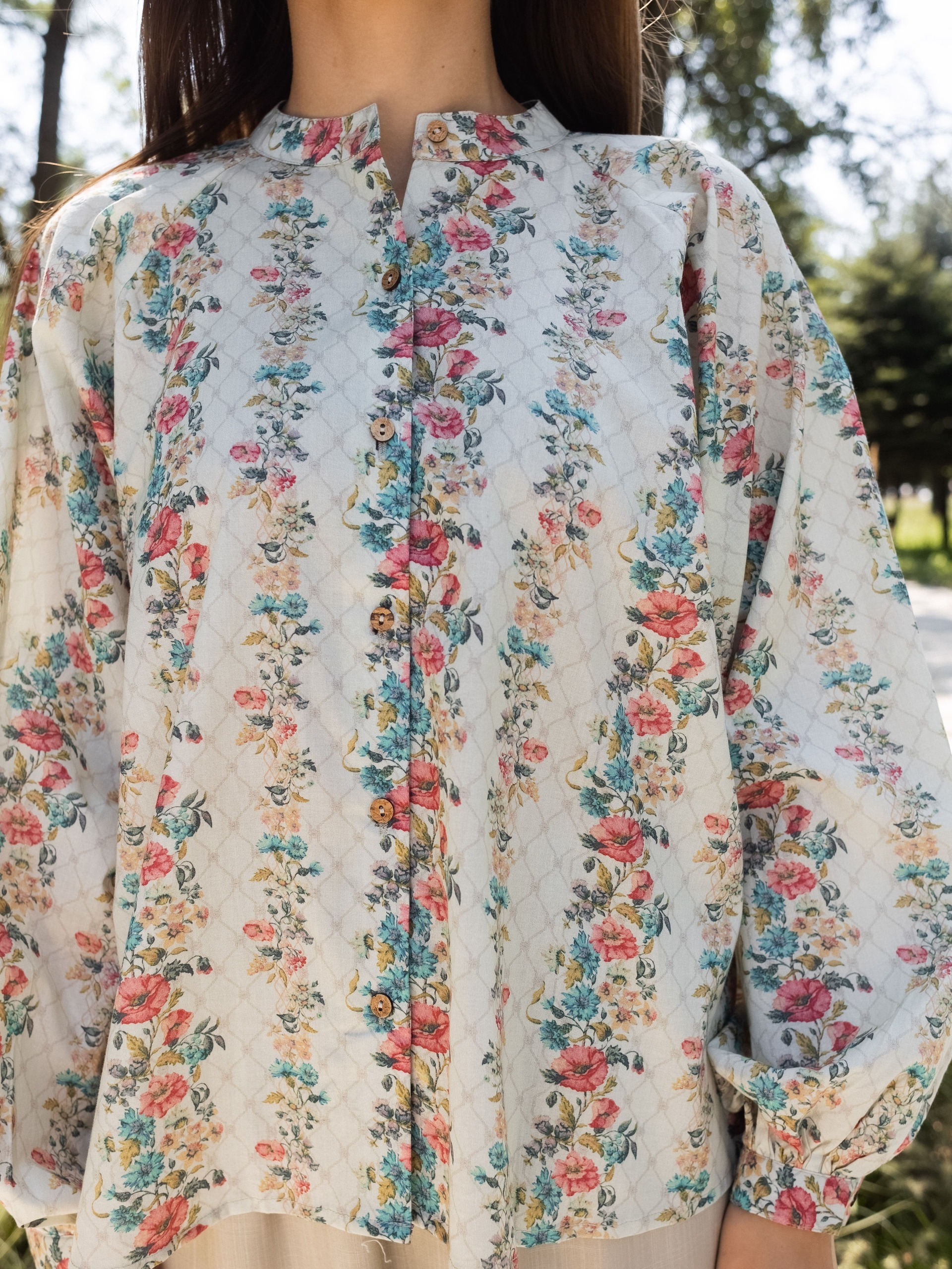 This floral cotton shirt is crafted from soft, breathable cotton for all-day comfort. Designed with elegant puffy long sleeves, it adds a feminine and stylish touch to a classic silhouette. The lightweight fabric and relaxed fit make it perfect for casual outings, workwear, or everyday wear. Easy to pair with jeans, trousers, or skirts for a chic, effortless look.